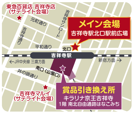 特賞・A賞は、キラリナ京王吉祥寺の賞品引換所にてお受け取りいただけます。