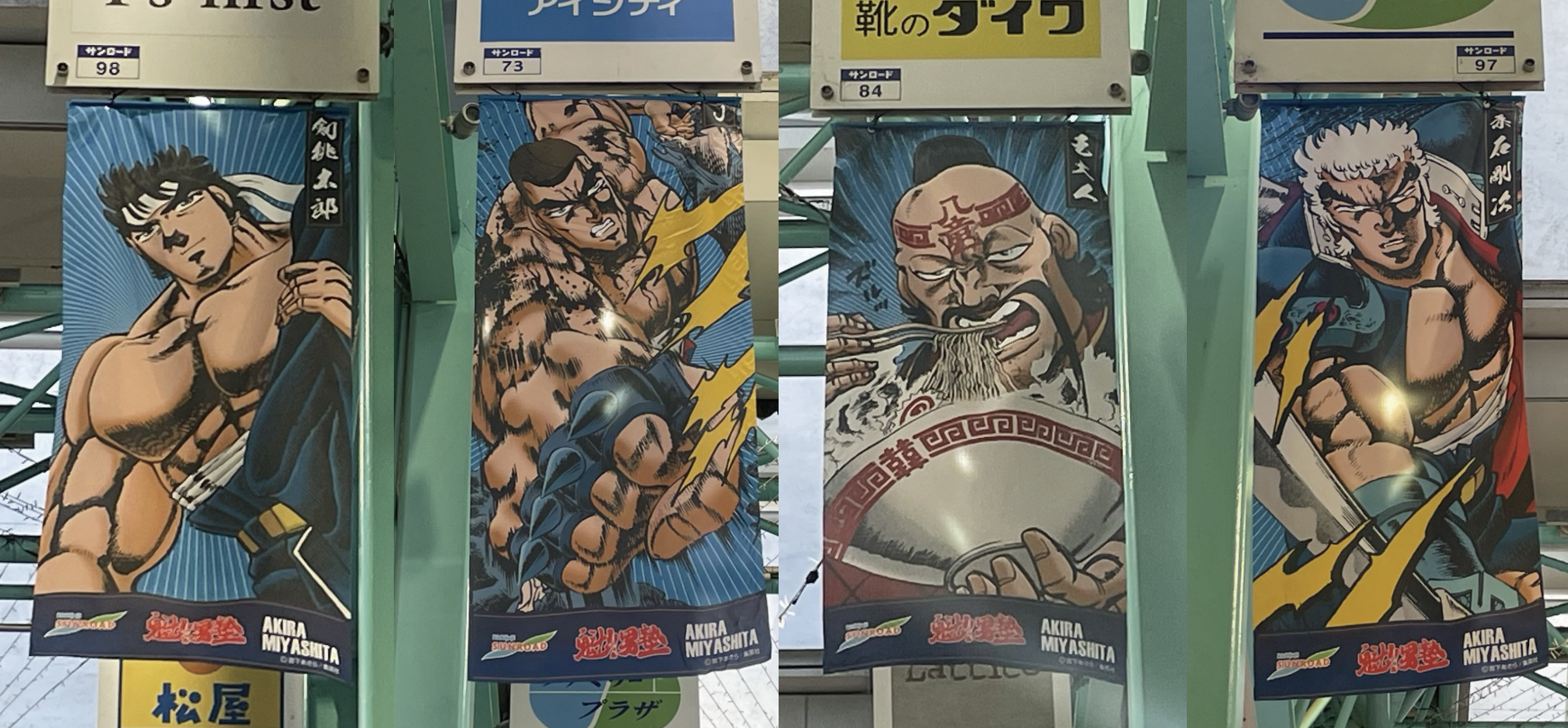「サンロード2025ウインタースクラッチセール」が開催中の吉祥寺サンロード商店街に、メインビジュアルの『魁!!男塾』のキャラクターが大集合しています!
