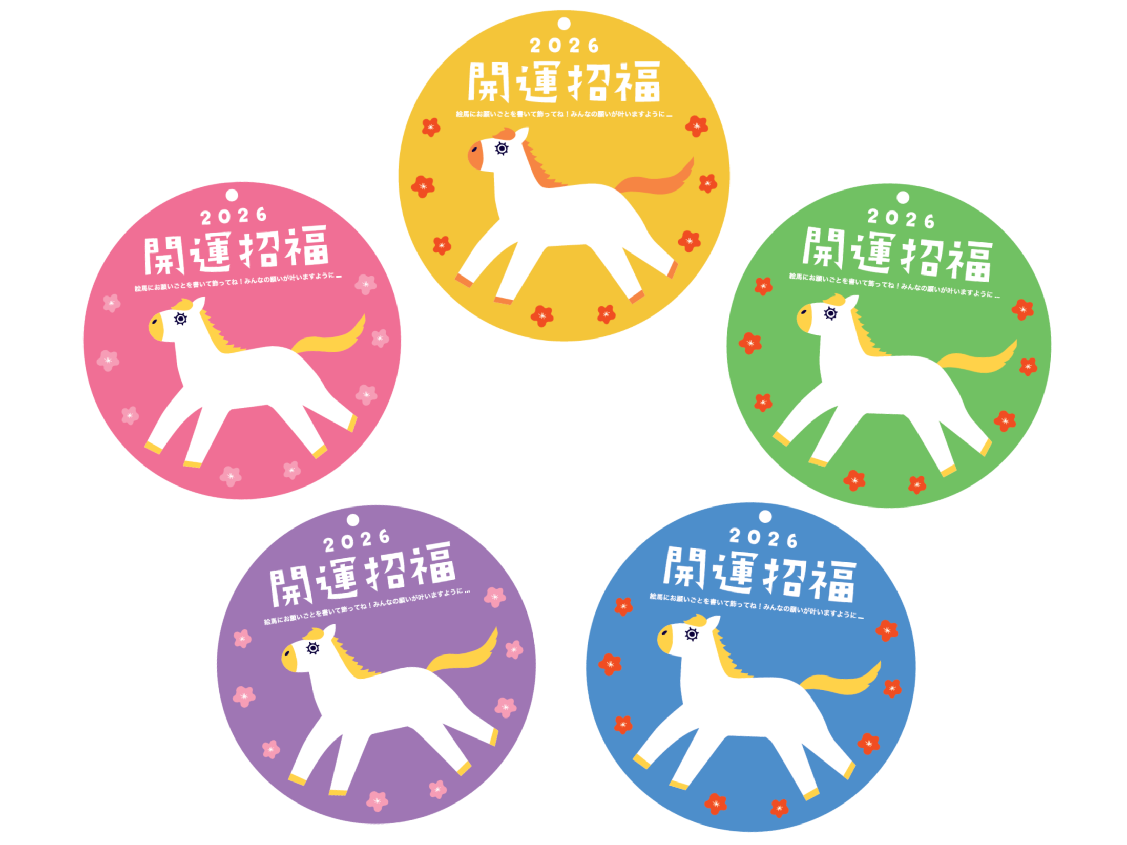 鮮やかな「5色」の絵馬の中から、あなただけの一枚をお選びいただけます。