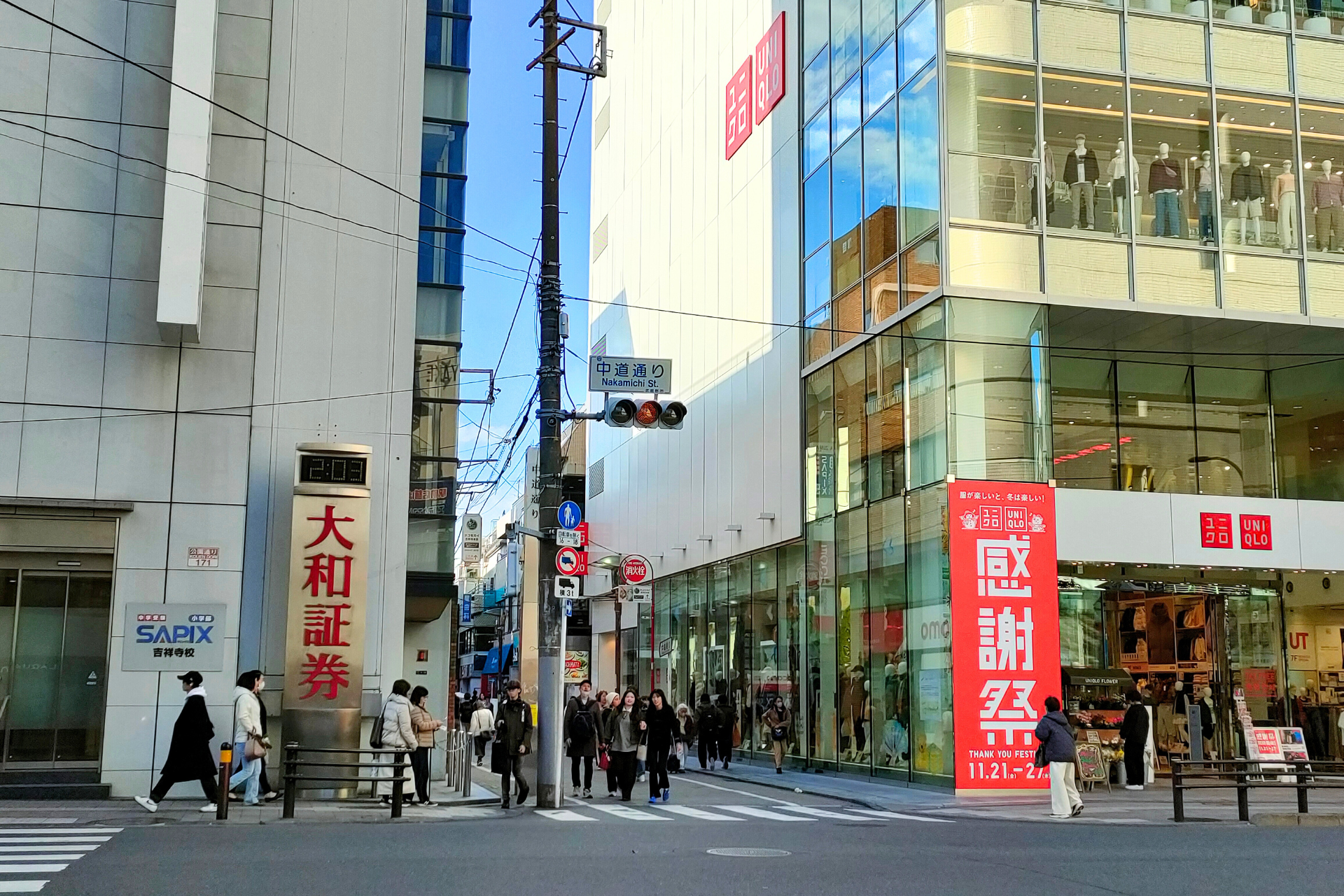 ユニクロ脇で、ちょっとオシャレしている人から普段着の人まで、信号待ちしている風景がすでに吉祥寺らしく、心が弾みます。