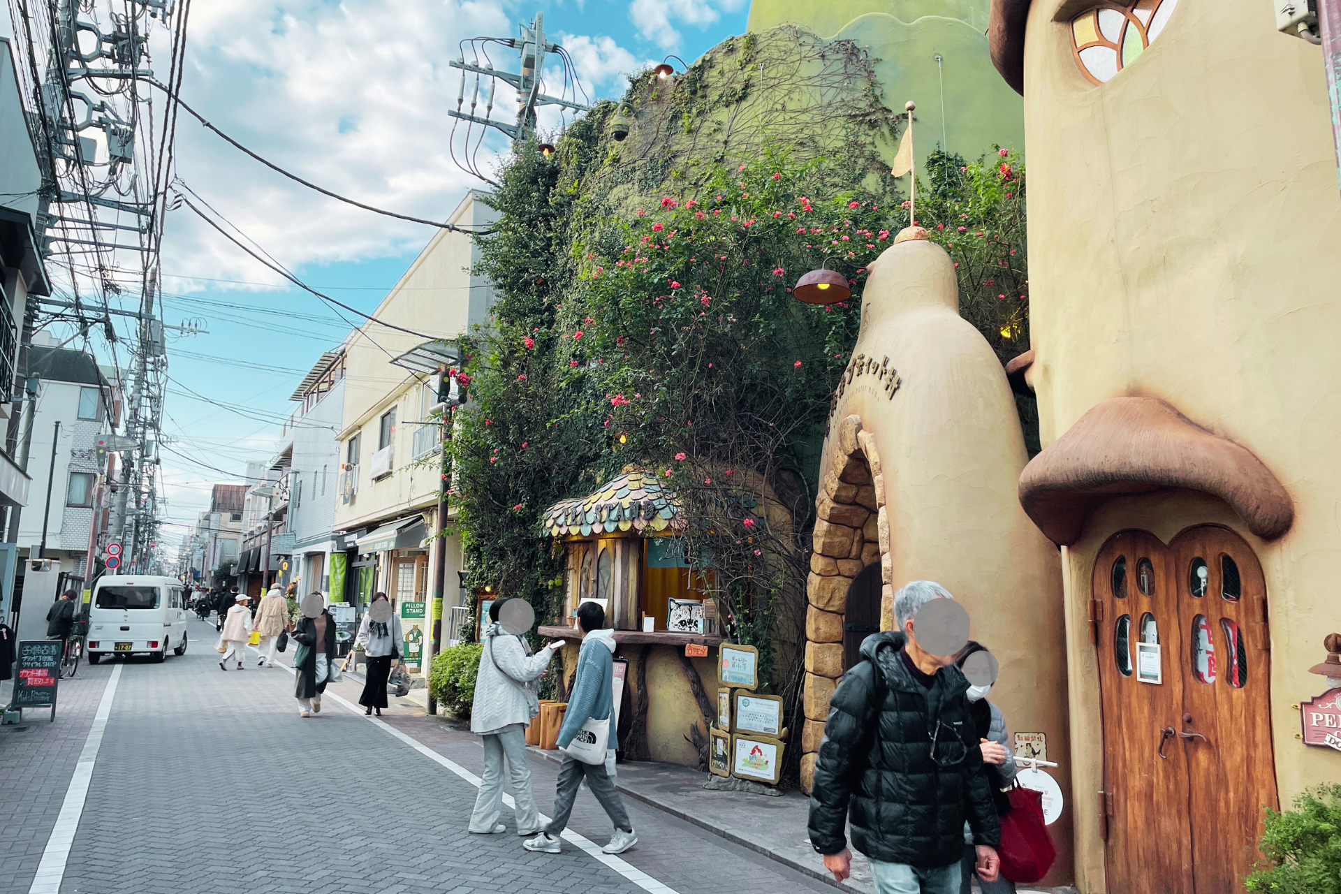 もう少し行くと、テーマパークのような一角が。絵本の世界をイメージした建物には、猫カフェや雑貨店、飲食店が集まっています。