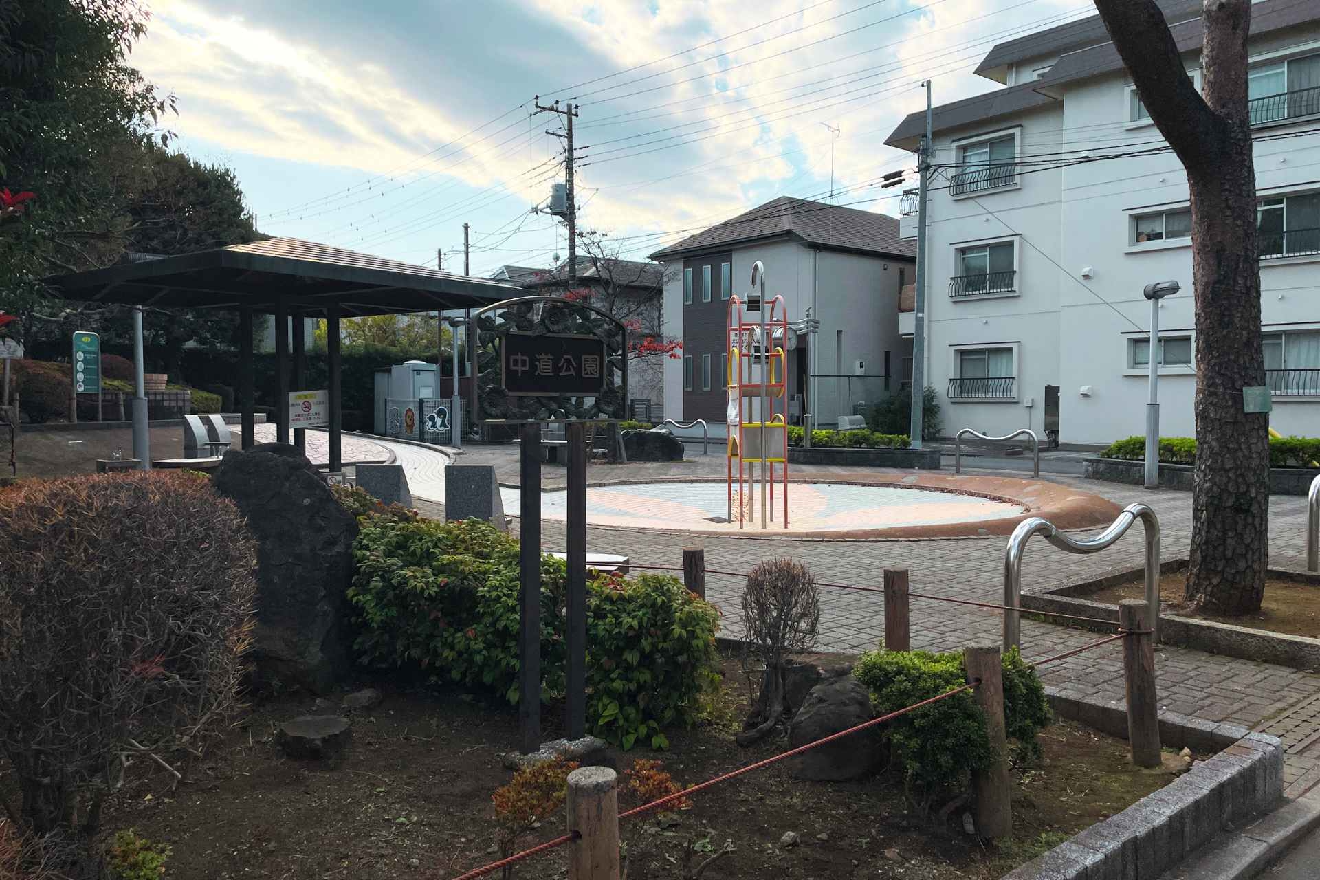 背の高い松が入口にそびえる中道公園が見えたらゴールです!