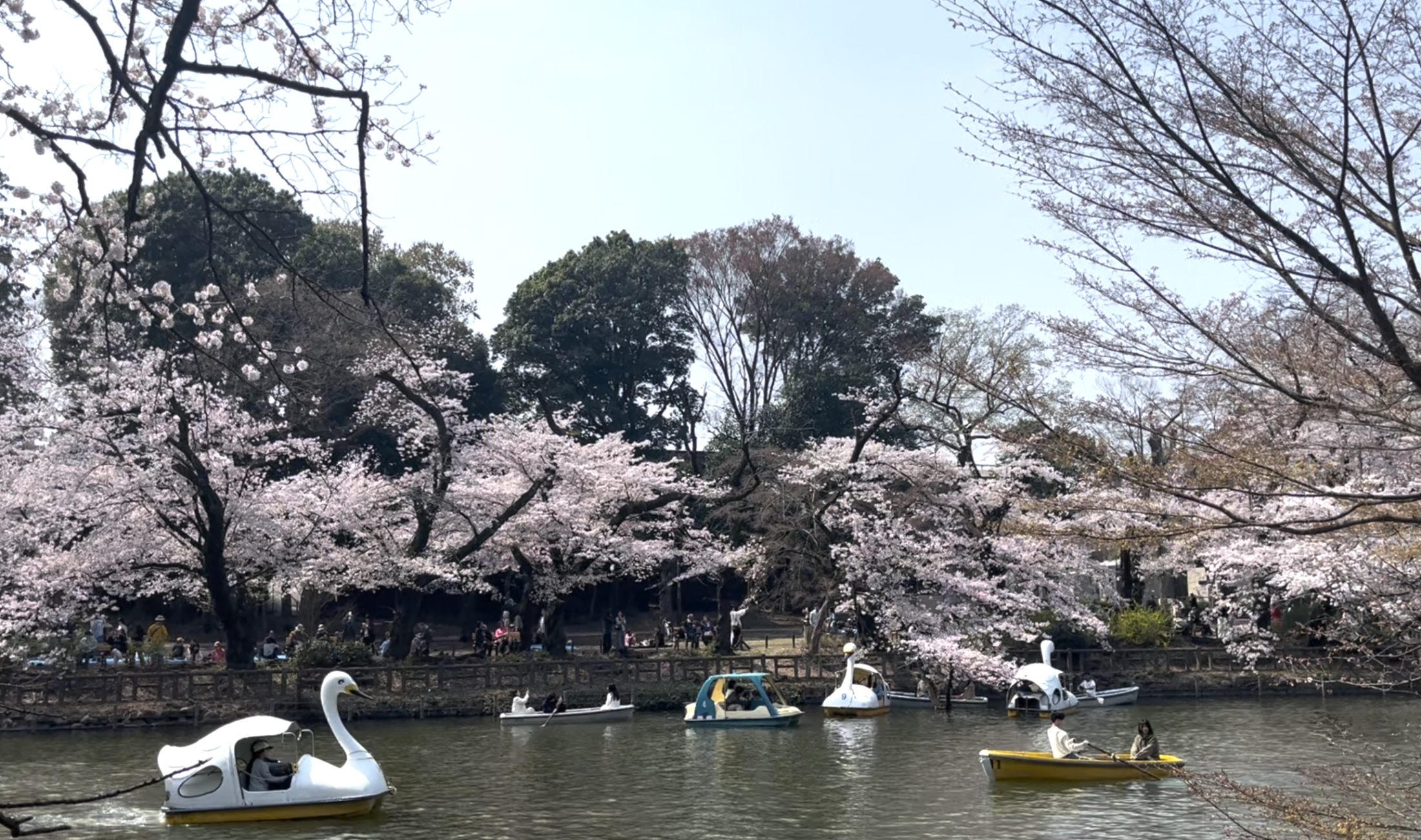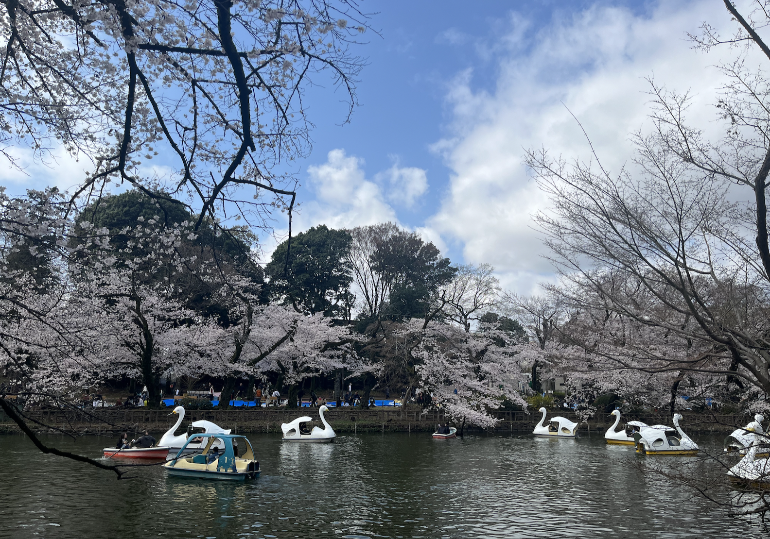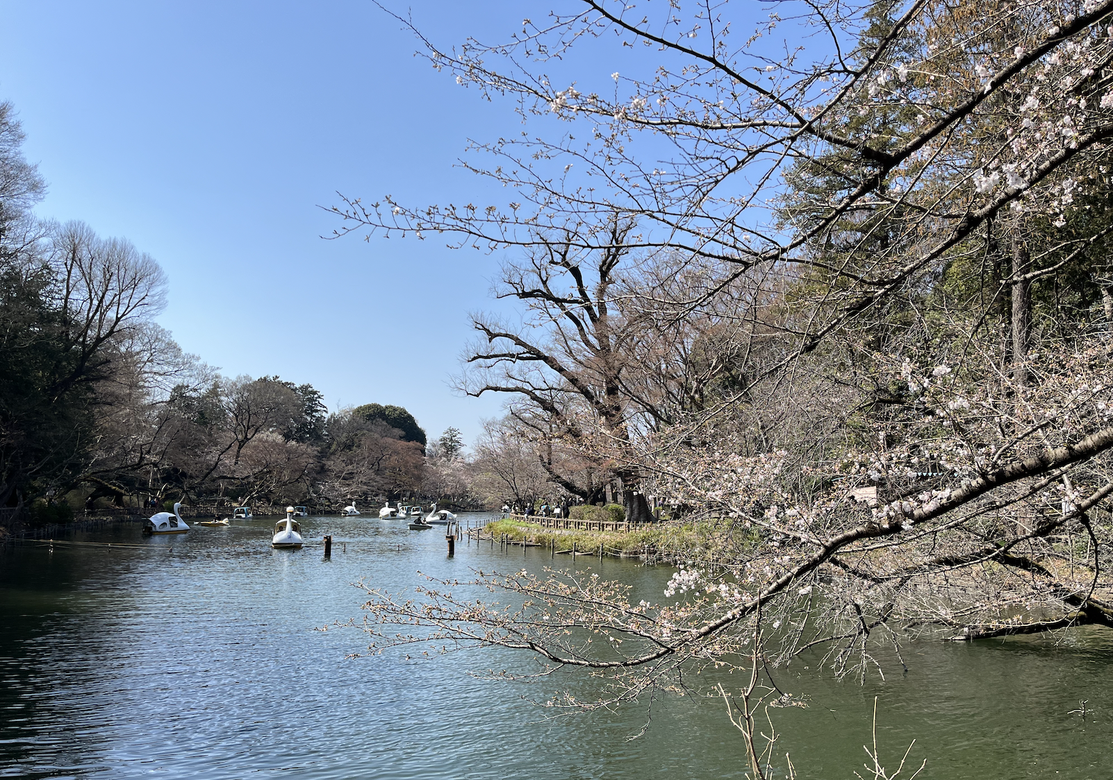 気温が上がって桜の開花も進み、井の頭公園は淡いピンク色で包まれています。ほっこりできる温かな午後はお散歩がオススメです。